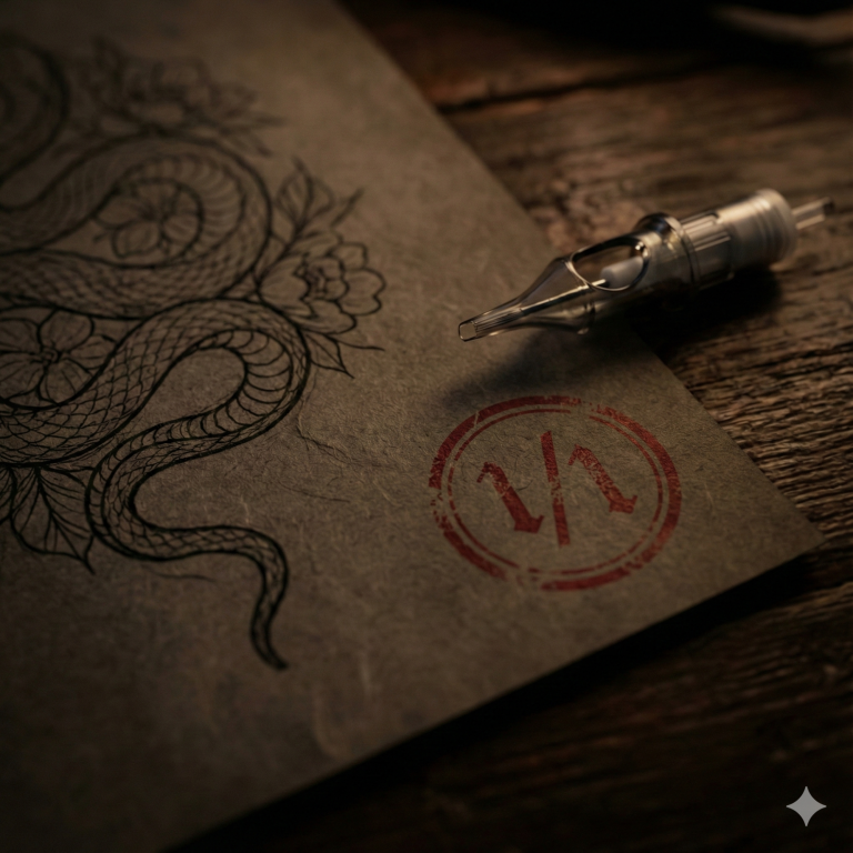 Nous refusons la standardisation. Chez La Veuve Rouge, vous ne choisirez jamais un motif sur catalogue (hors Flashs originaux). Chaque tatouage est une création sur-mesure, pensée pour épouser votre anatomie et raconter votre histoire. Nous garantissons que votre dessin est une œuvre originale qui ne sera jamais reproduite sur quelqu'un d'autre. Votre peau mérite l'exclusivité d'une pièce d'art définitive.