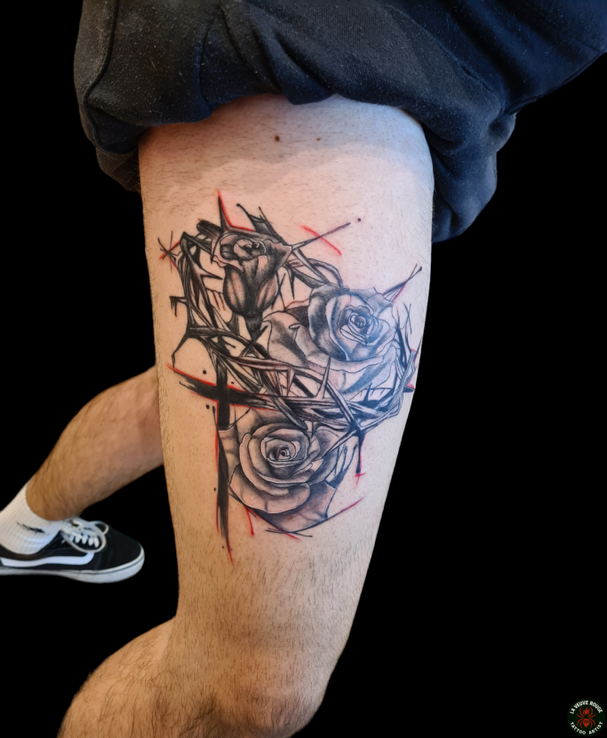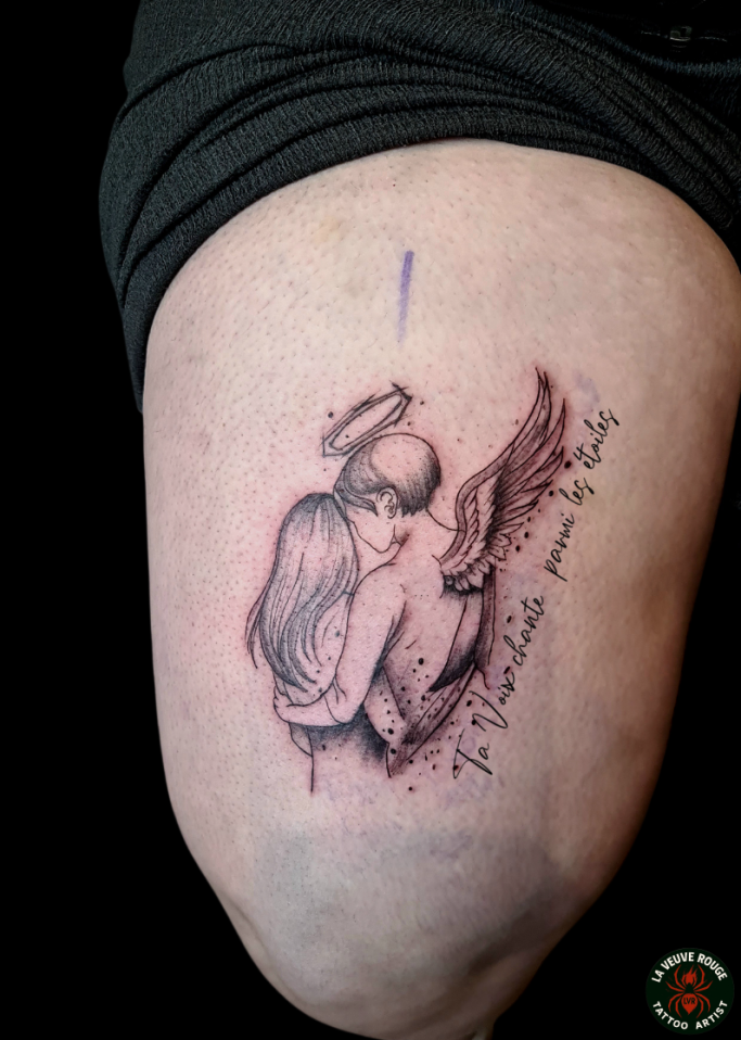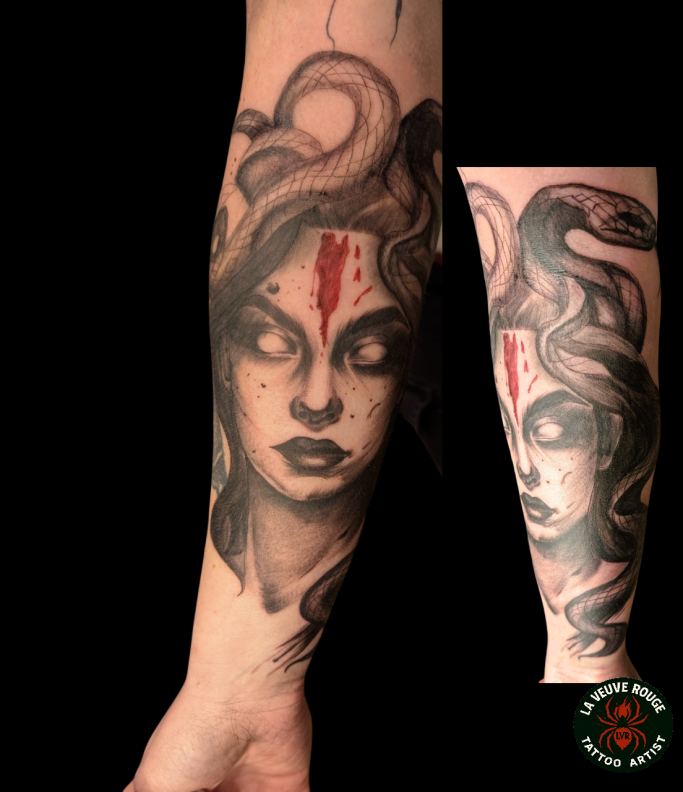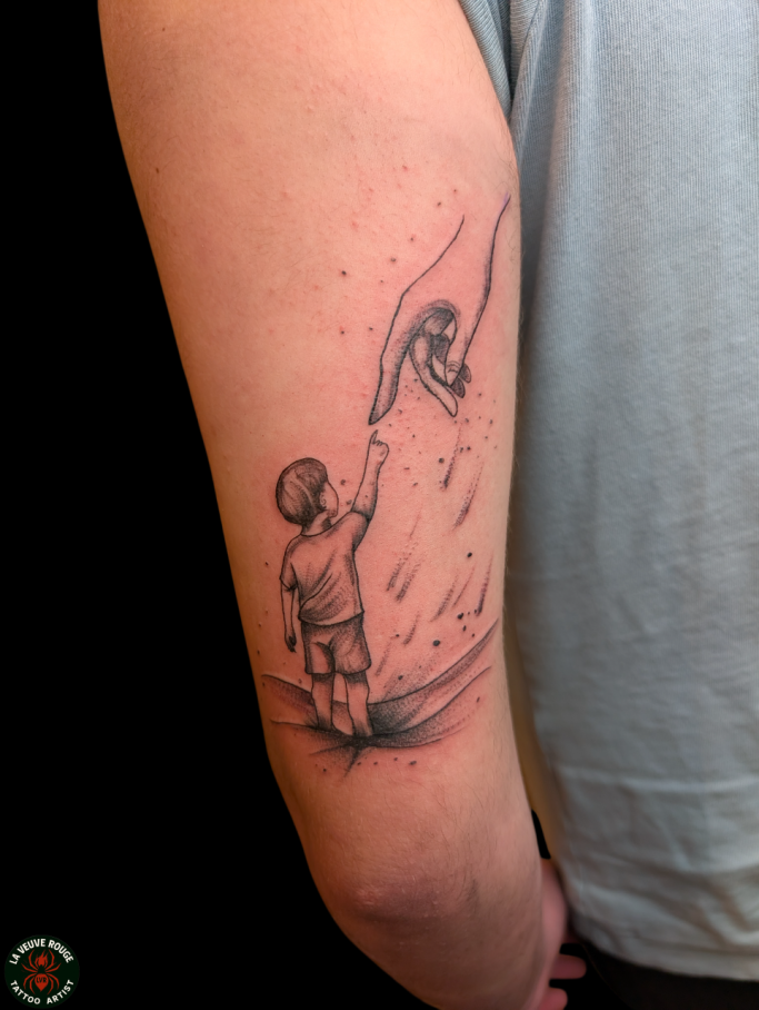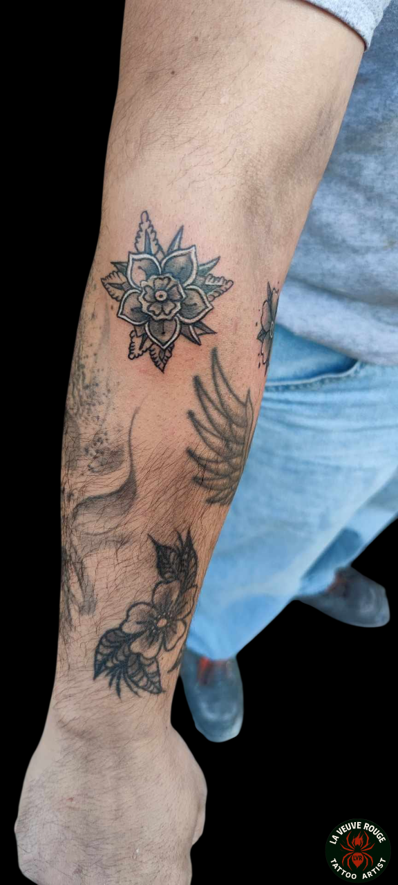 Ces tatouages sont des projets uniques, conçus sur-mesure pour chaque client. Ils ne sont plus disponibles, mais sont là pour vous inspirer et vous inviter à imaginer votre propre histoire sur la peau.