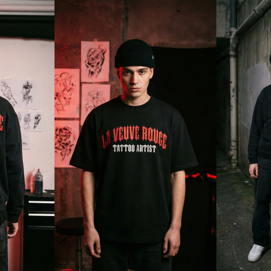 T-Shirt "Signature Artist" Le premier drop de notre collection textile. Une coupe streetwear premium, un coton lourd et durable. Il arborera fièrement la mention "La Veuve Rouge Tattoo Artist", pour porter notre esthétique Noir/Rouge au quotidien.